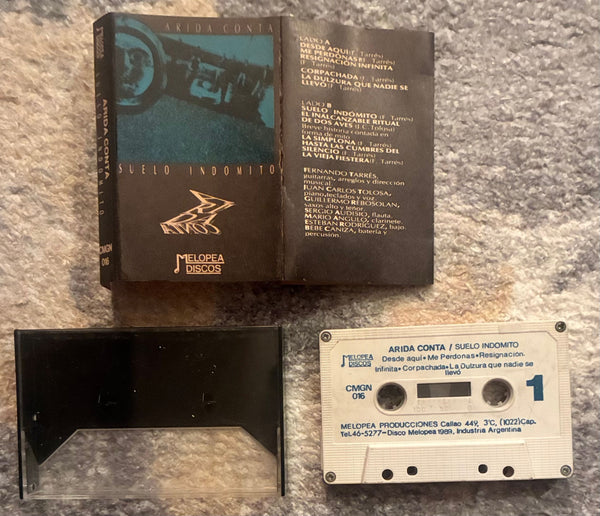 クラシックとポピュラー共に精通するコルドバ出身のギタリストFernando Tarrés、ピアニストJuan Carlos Tolosaが中心となって当時20代前半のメンバー中心で結成されたArida Contaのデヴュー作。プロデュースは勿論Litto Nebbia、他にもCacho Tejirana,Marcelo Barajなどが参加。まずはタイトなリズムにスリリングな楽器のアンサンブル、上品なメロディーが交差するB4”Hasta Las Cumbres Del Silencio”、更に冒頭を飾るアルゼンチンの慕情を表現したようなオーガニックジャズA1"Desde Aqui"、摩天楼の様に展開するハイセンスジャズB1"Suelo Indomito"、上質のジャズロックB5"La Vieja Fiestera"など素晴らしいです。どの曲も一筋縄ではいかない展開と熟練感が漂う見事という他ないMelopeaでも最上位ランクの一枚。カセット/LP共になかなか入りませんのでお見逃しなく。