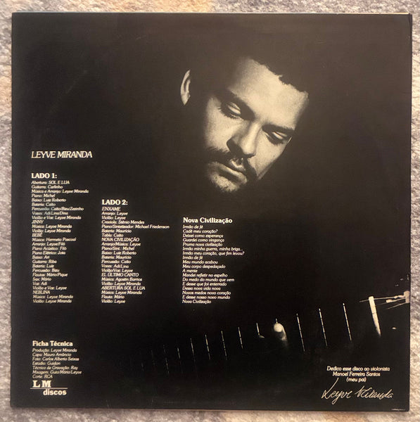 30年以上に渡り音楽スクール"Groove"を運営し多くのアーティストを輩出し現在も大きな尊敬を集めているブラジル人ギタリスト/音楽講師Leyve Miranda。本作は本人名義ではおそらく唯一作と思われる82年の自主制作盤。この作品でもカバーしていたり去年公開されたトークショウでも語っているHermeto PascoalやGismontiからの影響を色濃く感じさせる作風で、女性ヴォーカルをフォーチャーしたスピリチュアルな曲に始まり、前述”Hermeto Pascoal - Bebe”の華麗なアレンジ、前衛ジャズアンサンブル、情感溢れるギターソロまで隙なしの内容。素晴らしいです。鍵盤奏者Michel Freidenson、Mário Lúcio Marques (ex Placa Luminosa)、姉妹コーラスグループInstant 4のメンバーなどが参加しています。盤面/ジャケット共に良好なコンデションです。