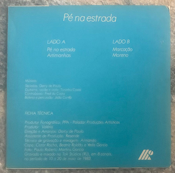 Brazilian EP in1983 by Valéria, a singer/pianist from the state of Rio de Janeiro. Born into a music family, while moving to Brasília and continuing to be a singer, this work was recorded in Rio from the persuasion of Darcy De Paulo, who participates in Jorge Ben and Ivan Lins' works. It starts with "Pé Na Estrada" a song with a clear voice and a floating intro that is reminiscent of the Minas release, and then moves to a samba rhythm, "Artimanhas" is a beautiful folky number with a delicate and mysterious melody inspired by fern leaves, which are said to be common in Brazil, "Marcação" most danceable samba MPB and "Moreno", melancholy love song written for a lover at the time, total 4 songs. Brazil magical minor single. This wonderful artwork had to be done in a hurry, and it appears to have been drawn by manipulating a photograph that resembles her.