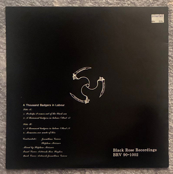 UK experimental duo Contrastate's 1990 release. First, the overwhelming “Perhaps It Comes Out Of The Black Sea” evokes an ocean of earthy, pulsating drone. Also included are the title track “A Thousand Badgers In Labour,” blending industrial, drone, and ambient elements amplified electrically, and the pulse-grinding dark ambient piece “Memories Are Made Of This”. Three deep sonic soundscapes in total. The artwork also features a unique touch.