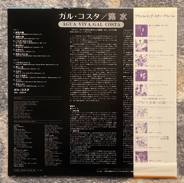 Gal Costa's 1978 album, representing Brazil's premier singer. Featuring an all-star lineup including Caetano Veloso, Gilberto Gil, Sivuca, Milton Nascimento, Luiz Gonzaga Jr., more in composition and performance. Our current mood is “O Gosto Do Amor” featuring unique vocal interplay Luiz Gonzaga Jr. with accordion and electric piano, “A Mulher,” weaving Caetano's rock feel with Brazilian rhythms and “Cadê” with Milton's flowing arrangement accented by Marcos Resende's synth. The masterpiece, scattering diverse elements throughout, also marked a turning point in her career. Listening again reveals so many new discoveries. The Japanese edition with obi strip we'd been searching for all along.