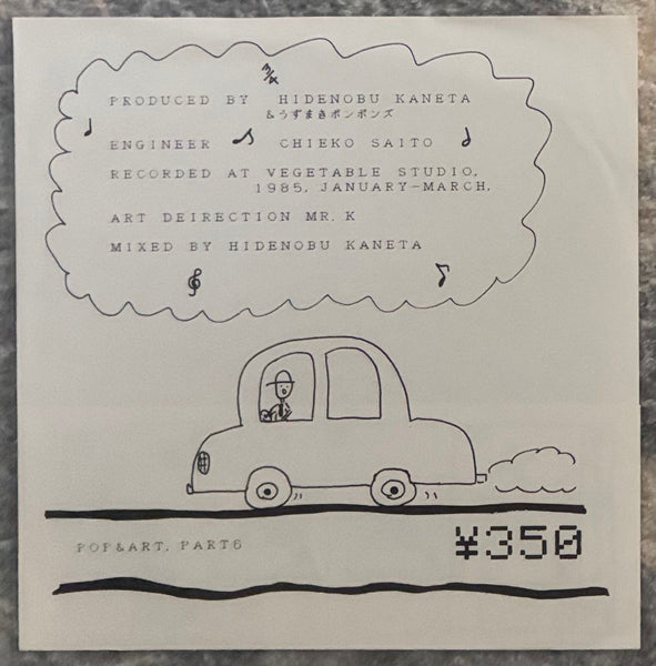 1985 flexi-disc single by Uzumaki Ponponz, a unit thought to be a separate unit formed by Hidenobu Kaneta and Chieko Saito, the two members of Inpull Caco. Include lo-fi minimal wave “Mesepo-” and new wave tune “Uzumaki Song” feat saxophone. This is the 6th release in the POP & ART series from Inpull Caco's label. It comes with artwork parodying Arale-chan and Gundam as an appendix. It seems quite valuable.