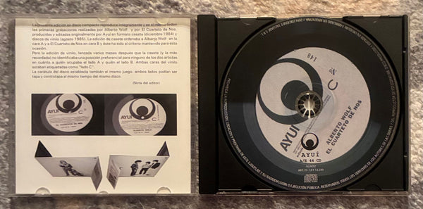 The first recorded work by Alberto Wolf, Uruguay's unique songwriter. Released in 1985 as a split album with the group El Cuarteto De Nos, which included Riki Musso as a member (apparently the 1984 cassette tape was the first release). Both sides feature humorous, addictive sounds. Alberto Wolf's contributions include the smooth yet habit-forming groove of the classic “A la Deriva” the reggae tinged “Ella Va”, groovy MPU “Ojos De Gata” featuring backing vocals by Mariana Ingold and Estre Magnone, and amazing melancholic ballad “Un Instante” that already showcasing his distinctive atmosphere from this early period. The El Cuarteto De Nos side includes the moody folk ballad “Totalmente Normal” and great MPU “Sale Igual” featuring contributions from Hugo Jasa, Mariana Ingold, and others. The original LP/cassette is phantom-level item. This is the 2004 remastered reissue CD released by Ayui.