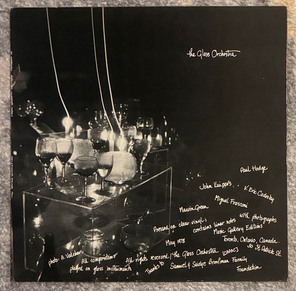 その名の通り大小さまざまなガラスを使ったパフォーマンスを行うカナダ・トロントで結成された前衛現代音楽集団The Glass Orchestraによる初期78年作。倍音がドローンのように響きメディテイティブな感覚A1、音響アンサンブルB1、どこかの民族儀式のようなB2を筆頭にした全6曲を収録。脳内をくすぐる不思議なガラスの音色の響き。B1にポップする箇所が二回あります。視聴ご確認ください。限定クリアヴァイナル仕様インサート付き。