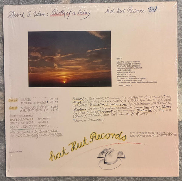 比類なきサックス奏者として幾多の傑作を残したDavid S. Ware。本作は初のリーダー作品として録音された77年作。ドラマーのMarc EdwardsとピアニストCooper-MooreとApogeeとして70年にボストンで結成されニューヨークに移ってからもSonny Rollins, Andrew Cyrille, Cecil Taylor Unitといった名だたるプレーヤーと共演しながら自身を高め、77年にトリオとしては最後の再集結で吹き込んだ全4曲を収録。互いの相乗を意識したな密な演奏、コントロール、表現力を感じさせる演奏が素晴らしい。特に息をも付かせぬグルーヴA2”Thematic Womb”は白眉。シュリンク付きの超美品。
