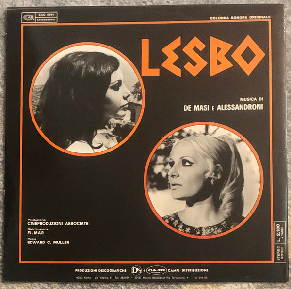 深い友情で結ばれ多くの共同作業も行っていた二人、幾多の傑作を残すイタリア・ライブラリー界の巨人Alessandro Alessandroniと指揮者として大きく活躍し映画やドキュメンタリーの世界にも進出した作曲家Francesco De Masiによるスプリット・サウンドトラック作品。A面では69年の官能映画『Lesbo』の楽曲全8曲を収録。温かみのある地中海的なロマンティック/ラウンジ/ジャズ/ボサノバを掛け合わせたようなサウンドを展開しています。中でもしっとりと歌うラウンジ調”Qualsiasi Cosa”や華やかなスキャットが入るボッサ・ナンバー”L'isola Dell'amore”は秀逸。B面同年公開『L'amore Questo Sconosciuto』では多少コミカルな楽曲を挟みながらも黄昏ロマンティック・ラウンジ”Exciting”や哀愁漂うラウンジなど聞かせる楽曲を収録。両名ともあまりこのようなタイプの作品は手掛けていないようです。さりげないジャケの配置がまたいいです。