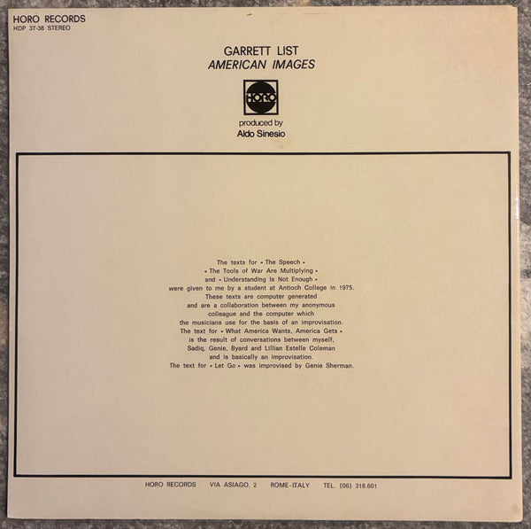 フリーな土壌から前衛、レフトフィールドそして教育者として濃密なキャリアを築いた米人トロンボーン奏者Garrett Listが79年にイタリアからリリースしていた二枚組アルバム。片方はソロによる奇妙で実験的な演奏を収録していますが、アンサンブルで演奏されたミニマリズム、ソウル、ジャズ、エクスペリメンタルなどを集約させたようなA/B面の内容が素晴らしい。女性ヴォーカルをフィーチャーしゆらゆらと絶妙な塩梅でブレンドされた”Slow Dance”、前衛と即興が交差する”The Tools Of War Are Multiplying”、ピアノと共にソウルフルなヴォ―カルで歌われる”Nothing At All”、声とアブストラクトな応酬”What America Wants, America Gets”を収録。Arthur Russellが好きな方にも推薦(共演もしてます)。