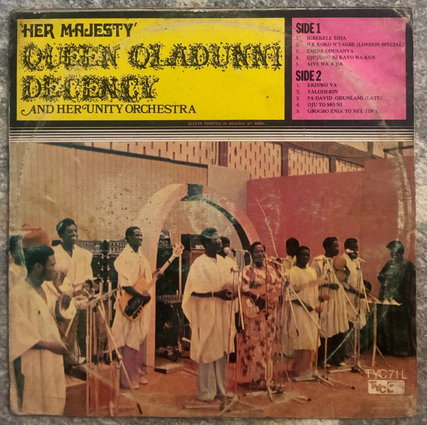 Queen Oladunni Decency, widely acclaimed as Nigeria's first female guitarist, produced numerous hit songs yet passed away at just 28 years old. This is her 1977 leader album. Total 10 soothing Juju tracks where her vocals provide healing alongside electric guitar and percussion, all set to a gentle rhythm. The B-side tracks are especially fantastic, including “Erinwo Ya” accented by psychedelic fuzz guitar. Brilliant african piece. While showing typical African condition with marks and linear scratches, the entire record played without jumps or skips. The B-side sounds better. We've recorded nearly the entire album, so be sure to check it out.