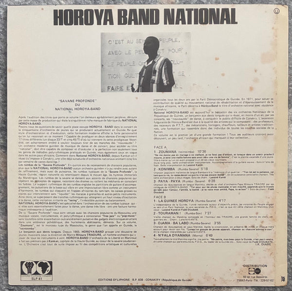 The Horoya Band won numerous awards from the late '60s to the early '70s and was active as the Guinea's national orchestra until 1974. This album, released in 1973, was towards the end of their career. It features the killer groove “Zoumana” over 10 minutes long, where each masterful performance intertwines with exquisite rhythm and psychedelia. In addition, there are ba lineup of pleasant performances, mainly of the northern rumba "Savane Profonde" performed by a limited group. Consider it one of the standout releases even among the masterpieces on Syliphone. The disc is in excellent condition with almost no audible noise.