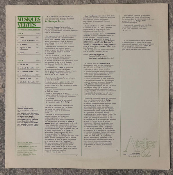 フランス南東部にて、1979年の調査によって植物由来の楽器約240種類の収集が可能になった。本作はその楽器たちの復元を機にコンポーザーJean-Yves Bosseur指揮の元、集団的にリハーサルとレコーディングを重ねリリースされた82年録音作品。鳥の鳴き声を模したもの、ひょうたんから作られた楽器、若い羊飼いや田舎の子供たちの玩具まで様々な植物楽器を組合し表現された全11曲を収録。興味深い音が続いていきます。素晴らしい。45回転仕様ですが33回転でも面白いです。