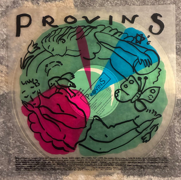 スウェーデンよりミステリアスなレコードが漂着。インディペンデントレーベルから85年にリリースされた謎グループProvinsによるもの。冒頭はインダストリアルなポストパンク崩れみたいな楽曲ですが、それ以外はガラクタ、喧騒音、声、ビート諸々を用いた脱線音楽あれやこれやを収録。透明なプラスチックのケースにクリアレコードが剥き出しで入ってましてそのせいで少しノイズ感じますが面白いです。