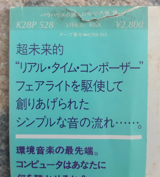 現在でも制作活動/ライブ活動をこなし近年ますます存在感を増す日本環境音楽パイオニアのひとり小久保隆。本作は83年にリリースされた1920~1930年頃にドイツで当時の先端素材を集め、画期的な創造を行っていた「バウハウスの人々」をインスピレーションに、小久保にとっての最先端であったオーストラリアで生まれたフェアライトCMIを駆使し他のキーボードやアナログサウンドは一切使わずに制作された拘りの作品。A面は二小節のシークエンスの繰り返しにフェアライトCMIにより実現された音を足しては修正の繰り返しを施した、自身が”ピカソが絵を描くような過程”を経て制作された3曲を収録。ミニマル室内楽のような趣のこの作品のハイライト。B面はランダム関数を用い、乱数的なゆらぎを発生させたエクスペリメンタル・エレクトロニクス的5曲を収録。両面全く異なった音楽性を持った楽曲が並びます。盤面綺麗ですがジャケットに汚れ等あります。